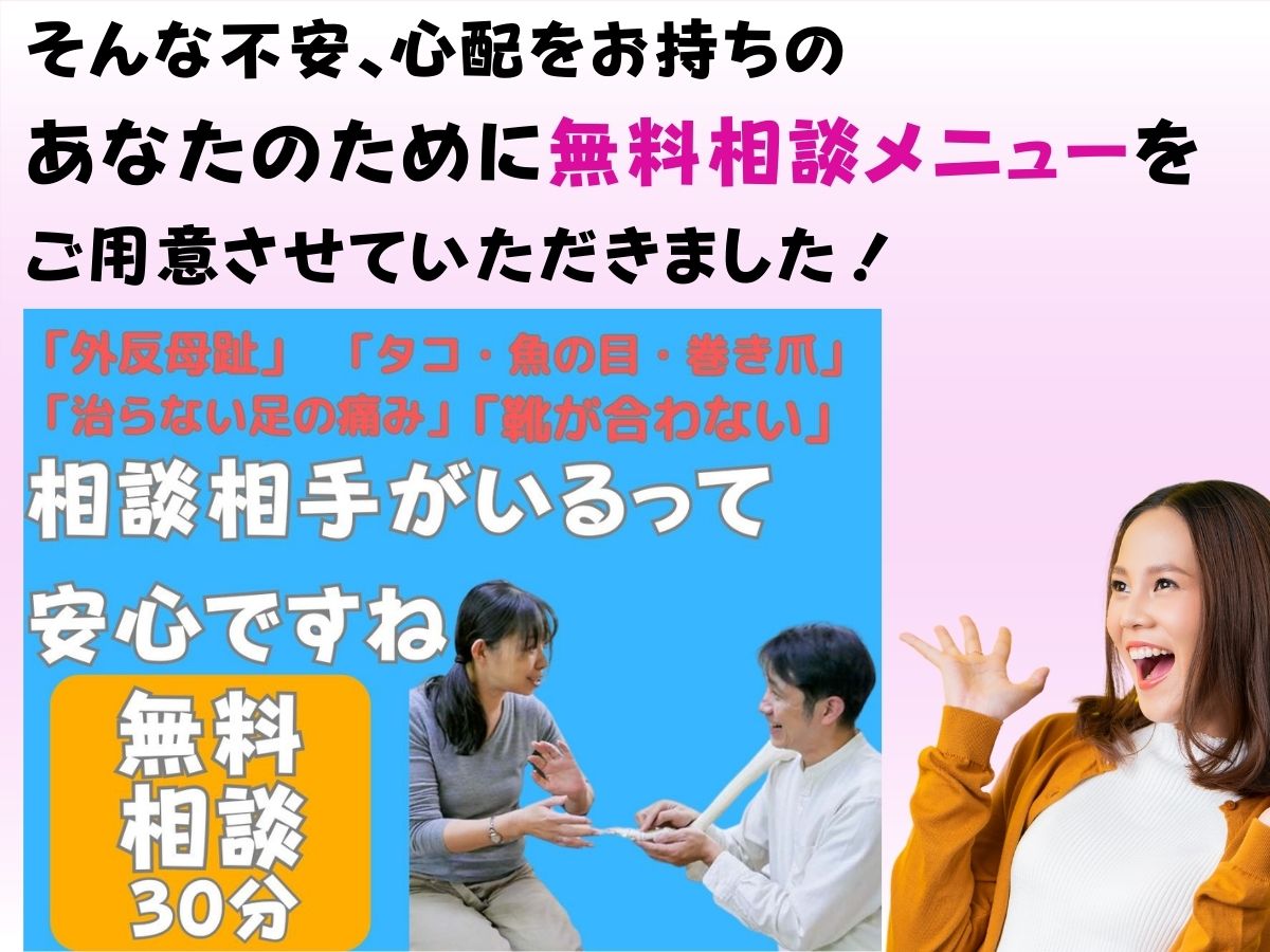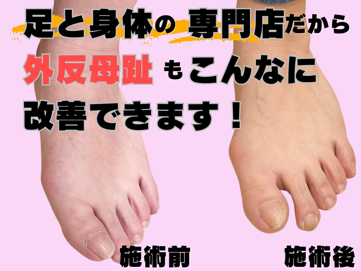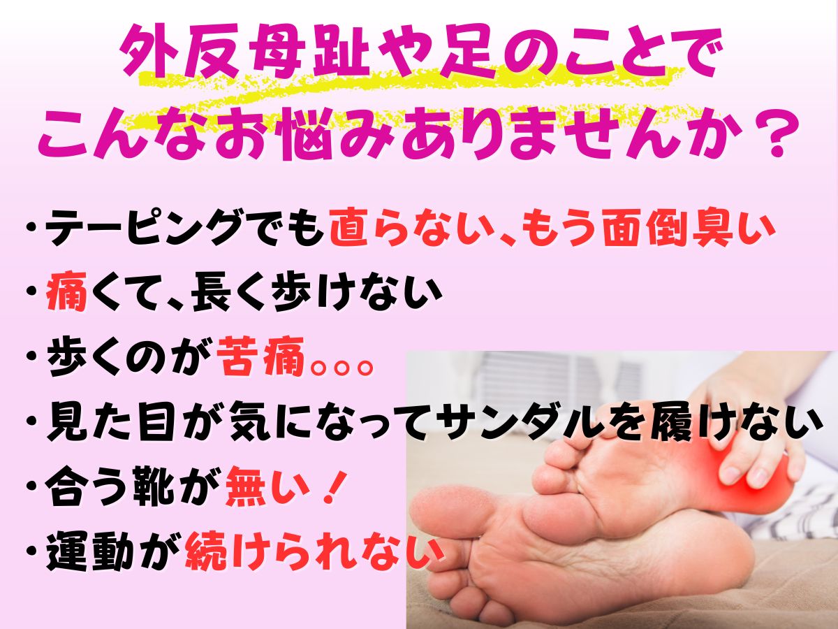 整体やマッサージをしても外反母趾や体が戻ってしまうのは筋膜と足の歪みを整えて無いからと考え、筋膜ケアとフットケア、オーダーメイドインソール作成の施術を行なっております。改善されない外反母趾のお悩みのお手伝いをさせて頂ければと思っておりますので、是非お気軽にお越し下さい!