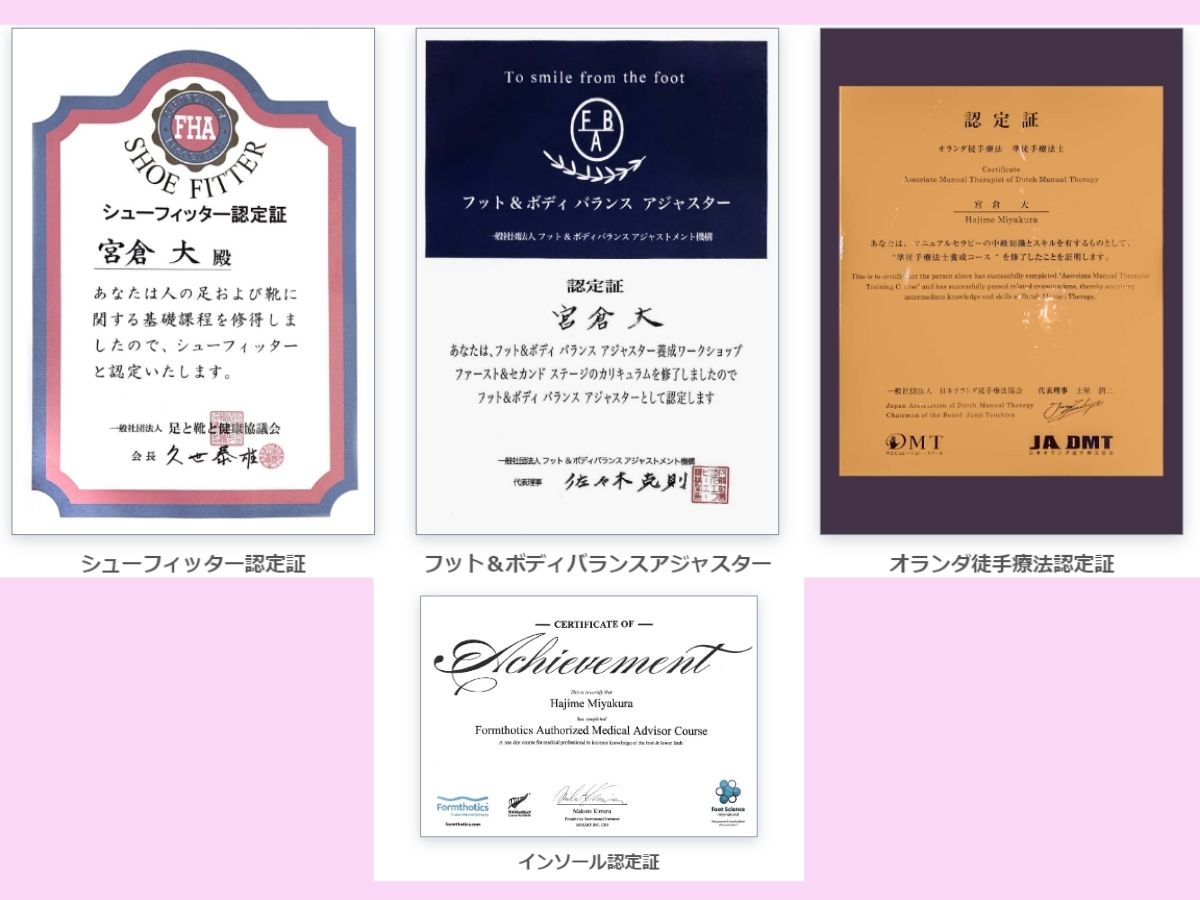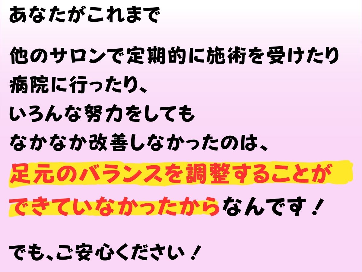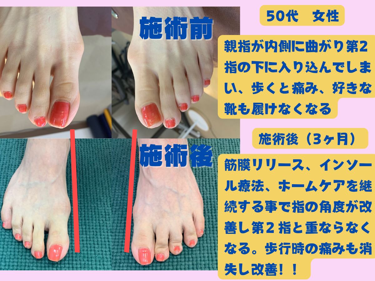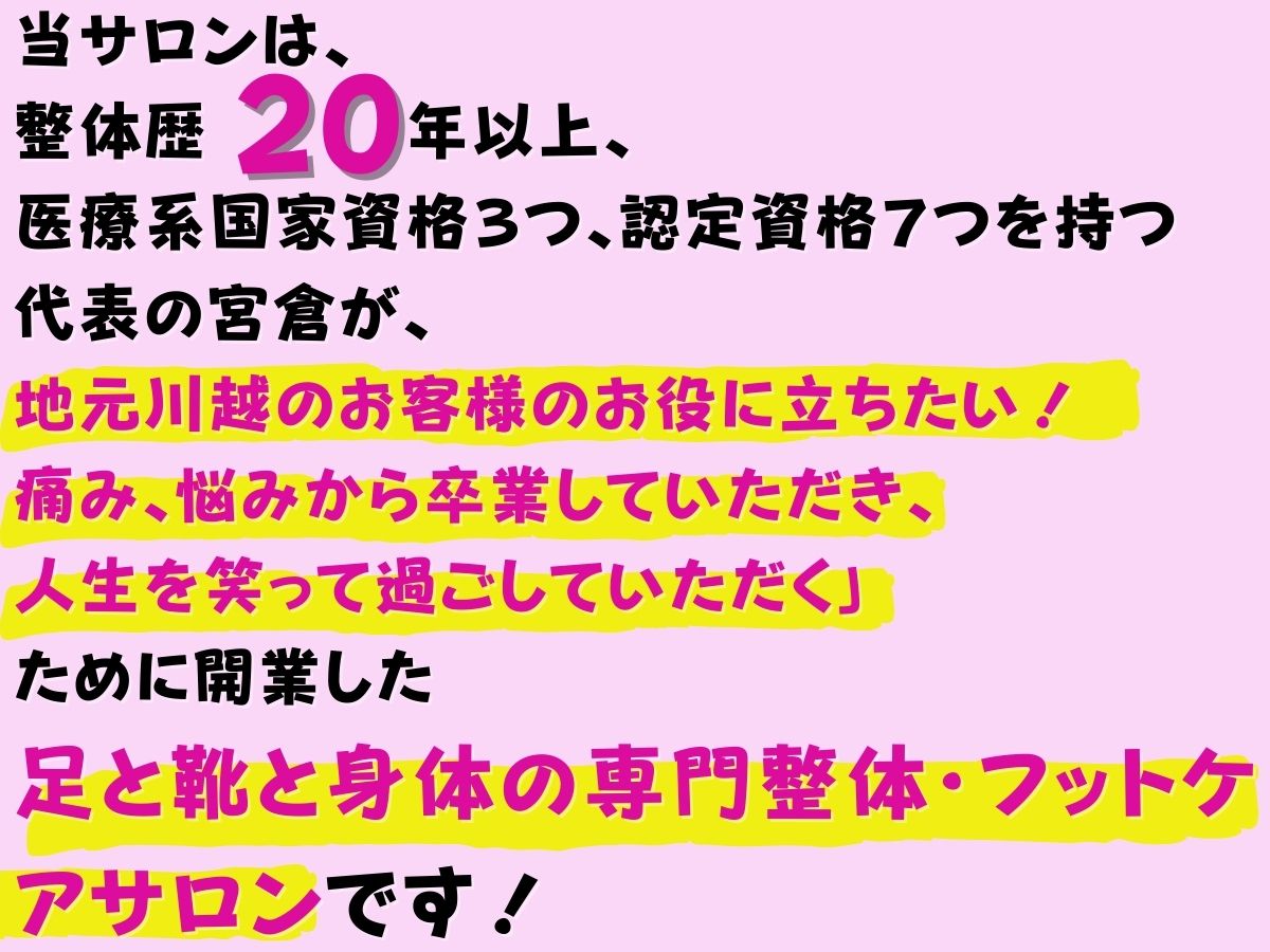 整体やマッサージをしても外反母趾や体が戻ってしまうのは筋膜と足の歪みを整えて無いからと考え、筋膜ケアとフットケア、オーダーメイドインソール作成の施術を行なっております。改善されない外反母趾のお悩みのお手伝いをさせて頂ければと思っておりますので、是非お気軽にお越し下さい!